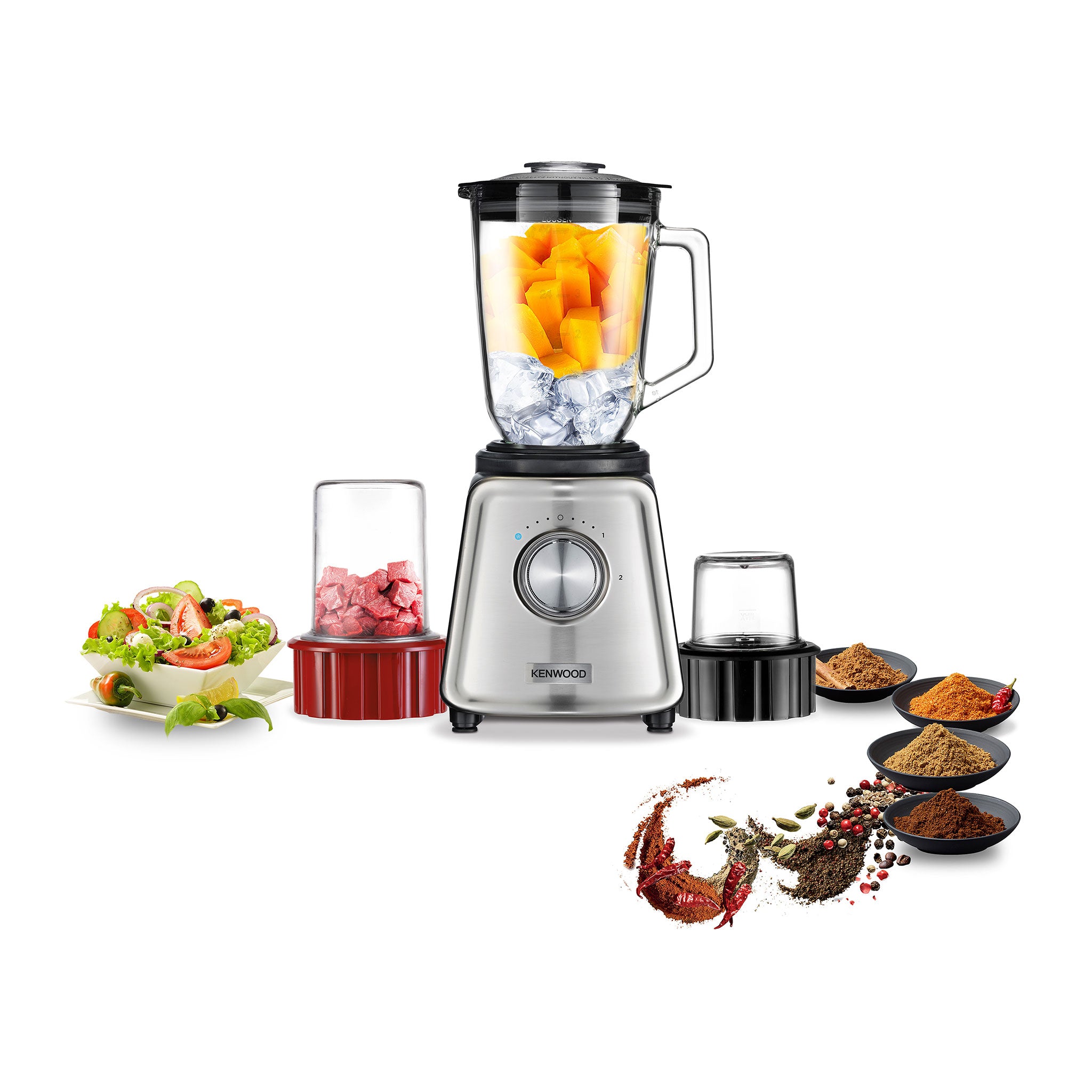 KENWOOD Glass Blender 800W Smoothie Blender/Smoothie Maker 1.5L with Glass Grinder Mill, Meat Grinder/Chopper Mill, Ice Crush Function BLP44.270SS Silver