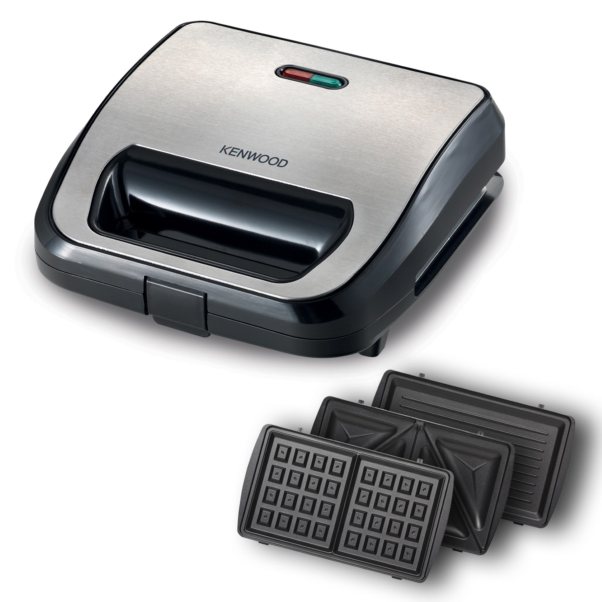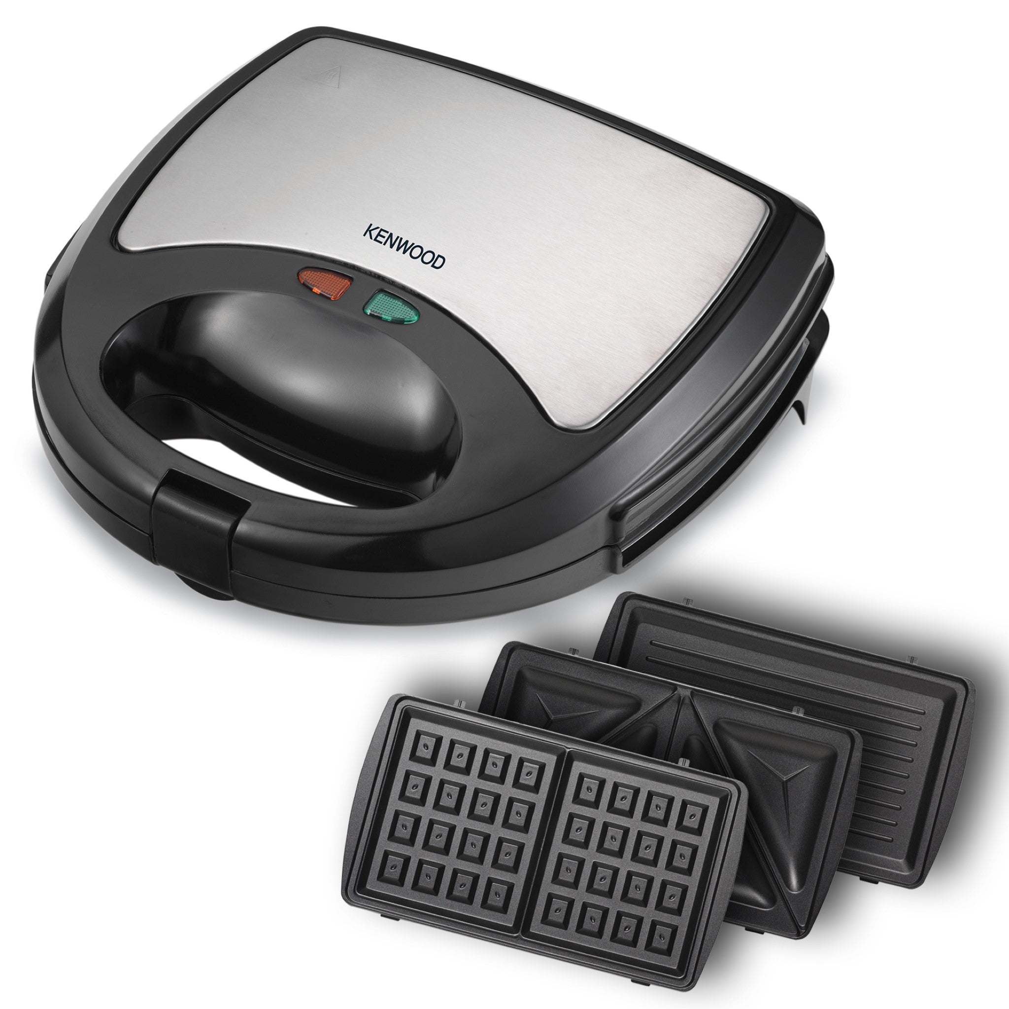 KENWOOD 3-in-1 Sandwich Maker, Waffle Maker & Grill with 3 Sets of Non Stick Multifunctional Plates for Grilling, Toasted Sandwiches and Waffles SMM02.000SI Silver/Black