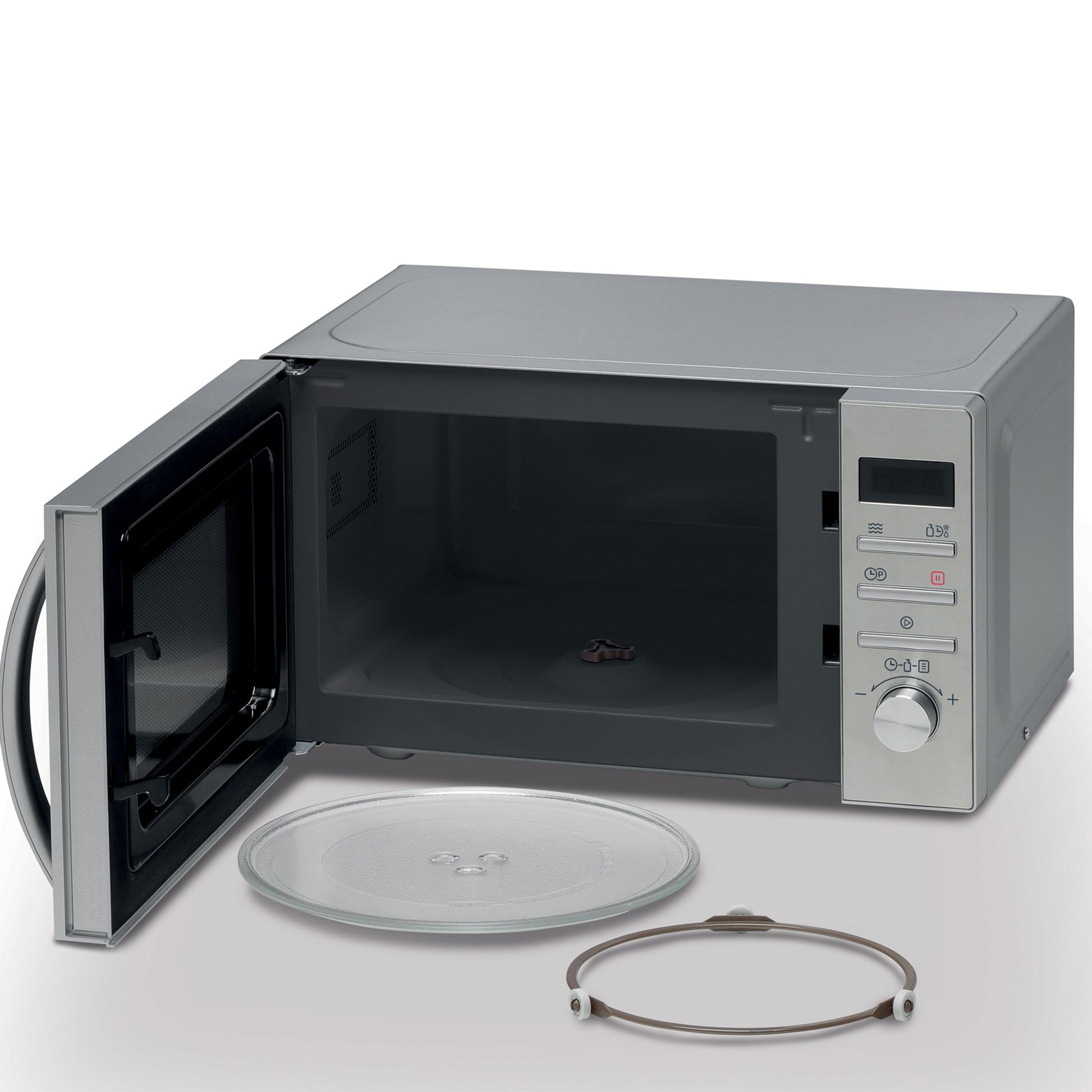 • Digital display with 5 power levels and defrost function (by weight or time) for flexible cooking.