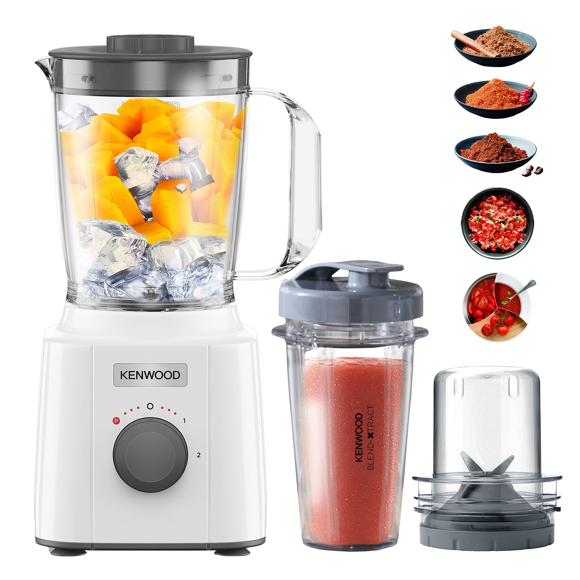 Enjoy effortless blending and grinding with the Kenwood BLP31.D0WG Blend-Xtract 3-in-1 Blender — designed for healthy smoothies, sauces, soups, and spice grinding, all in one compact and stylish appliance.