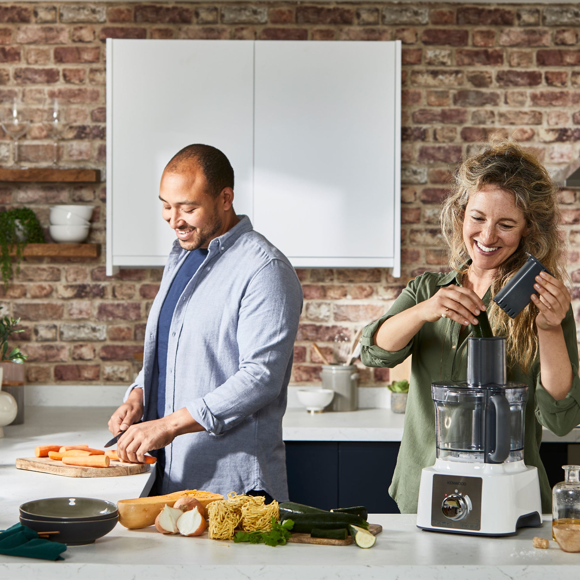 Upgrade your kitchen prep with the Kenwood MultiPro Express FDP65.750WH. Built to make food preparation faster and more versatile, this powerful 1000 W appliance helps you chop, slice, grate, blend, knead and juice—all in one elegant white unit.