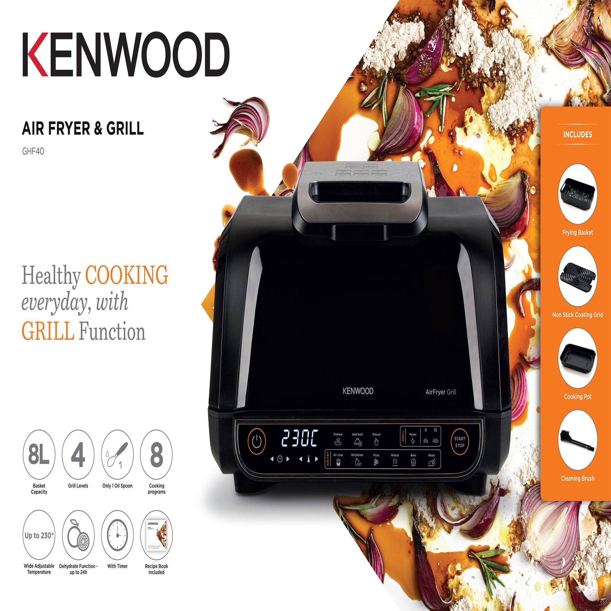 Kenwood GHF40.000BK 8 L 2-in-1 Air Fryer & Grill – 1 700 W | 4-Level Grill Basket | 8 Cooking Modes