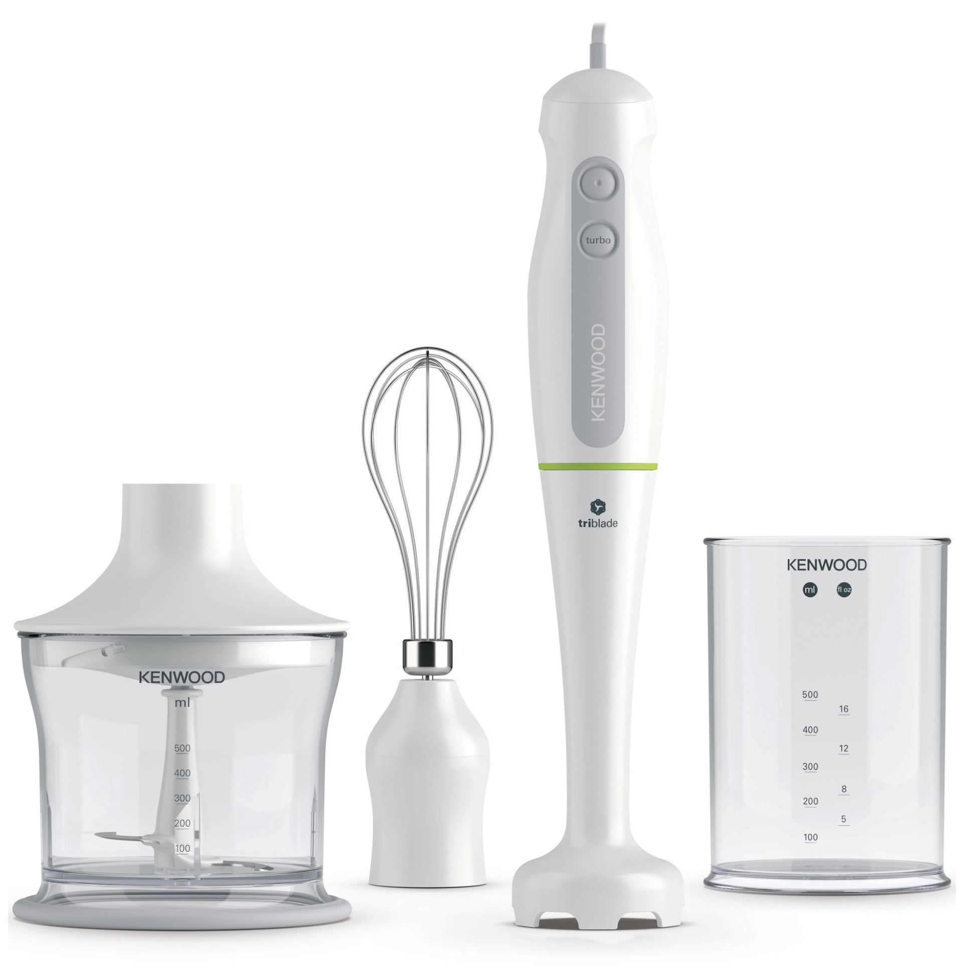 Kenwood HDP104WG Triblade™ Hand Blender – 600 W | 0.5 L Chopper Bowl & 0.6 L Beaker | White/Clear