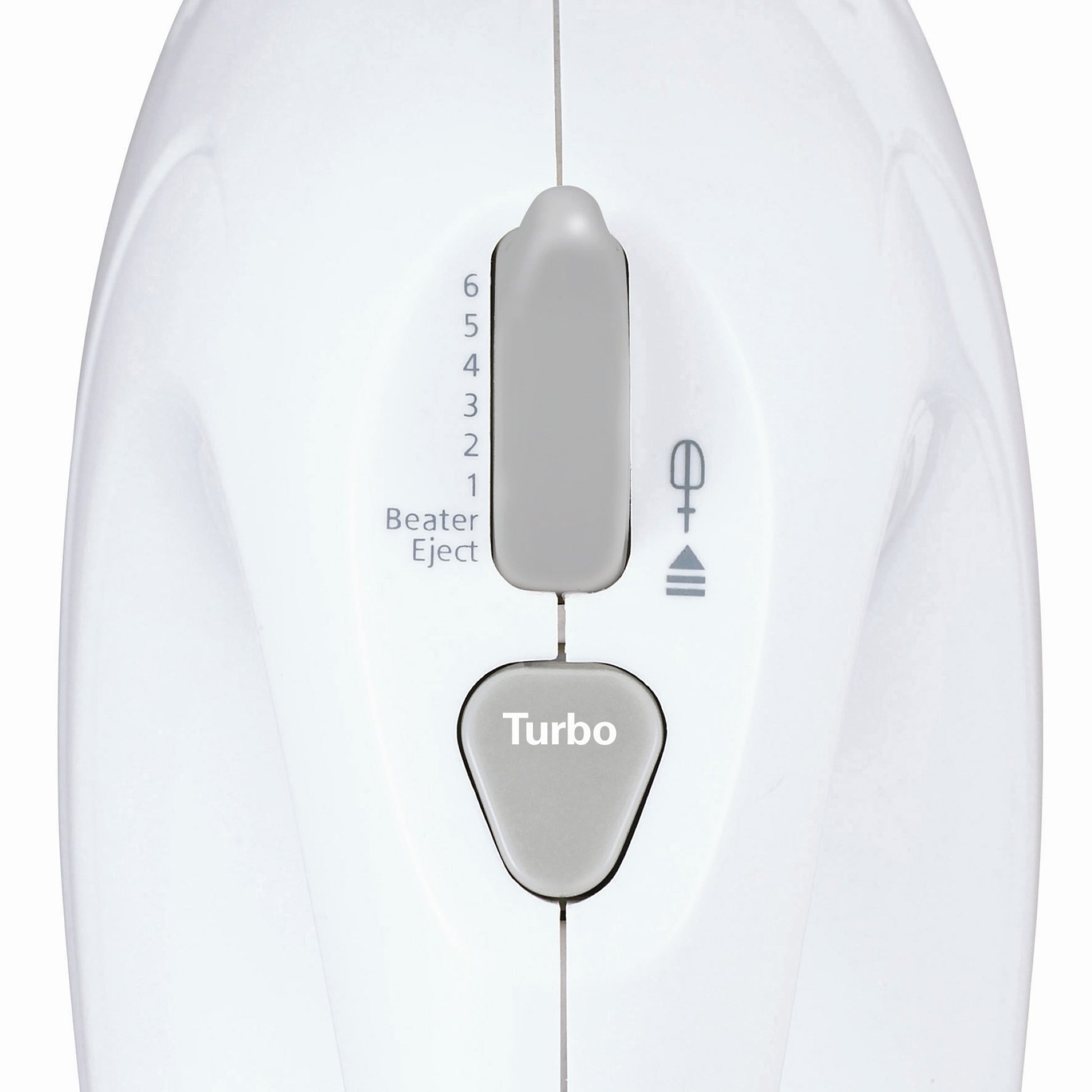 • 6 variable speeds + Turbo function: Lets you control the speed and texture—from slow stirring to quick whipping.