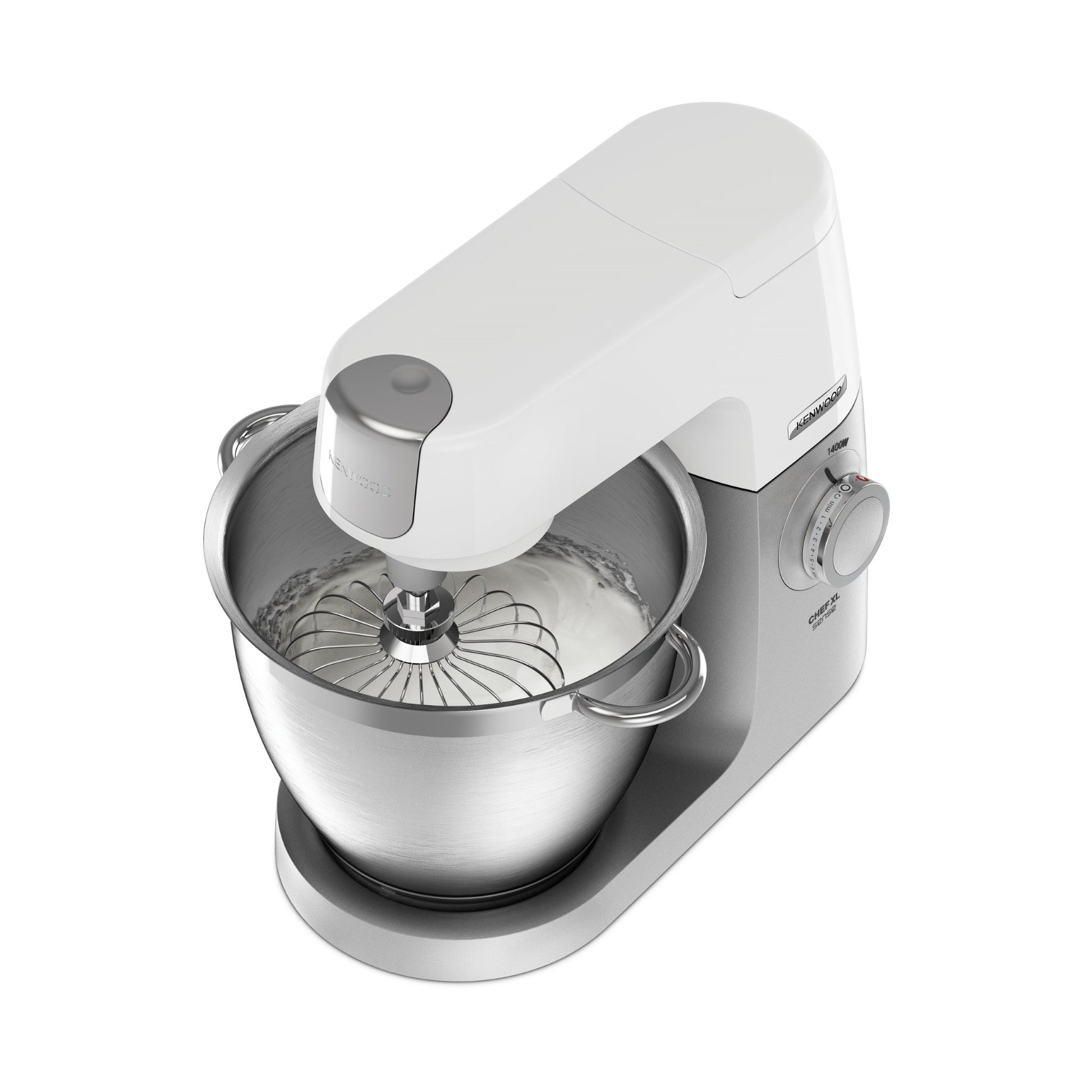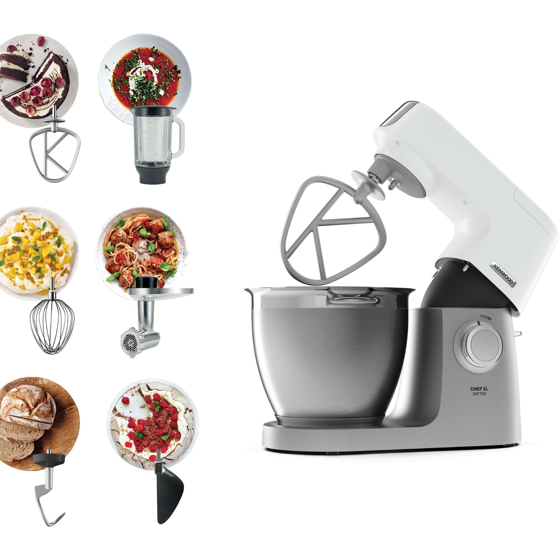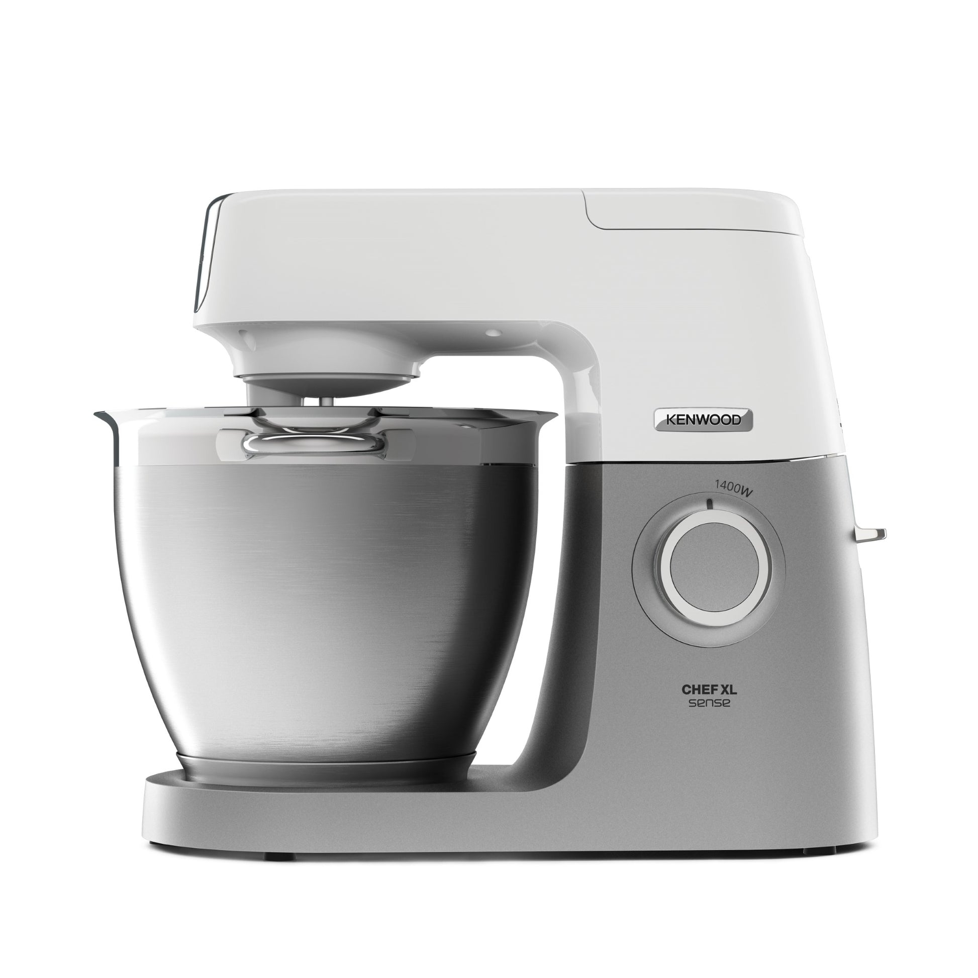 KENWOOD Stand Mixer Kitchen Machine Metal Body CHEF XL SENSE 1400W with 6.7L Stainless Steel Bowl, K-Beater, Whisk, Dough Hook, Folding Tool, Meat Grinder, Food Processor KVL6140T Silver/White