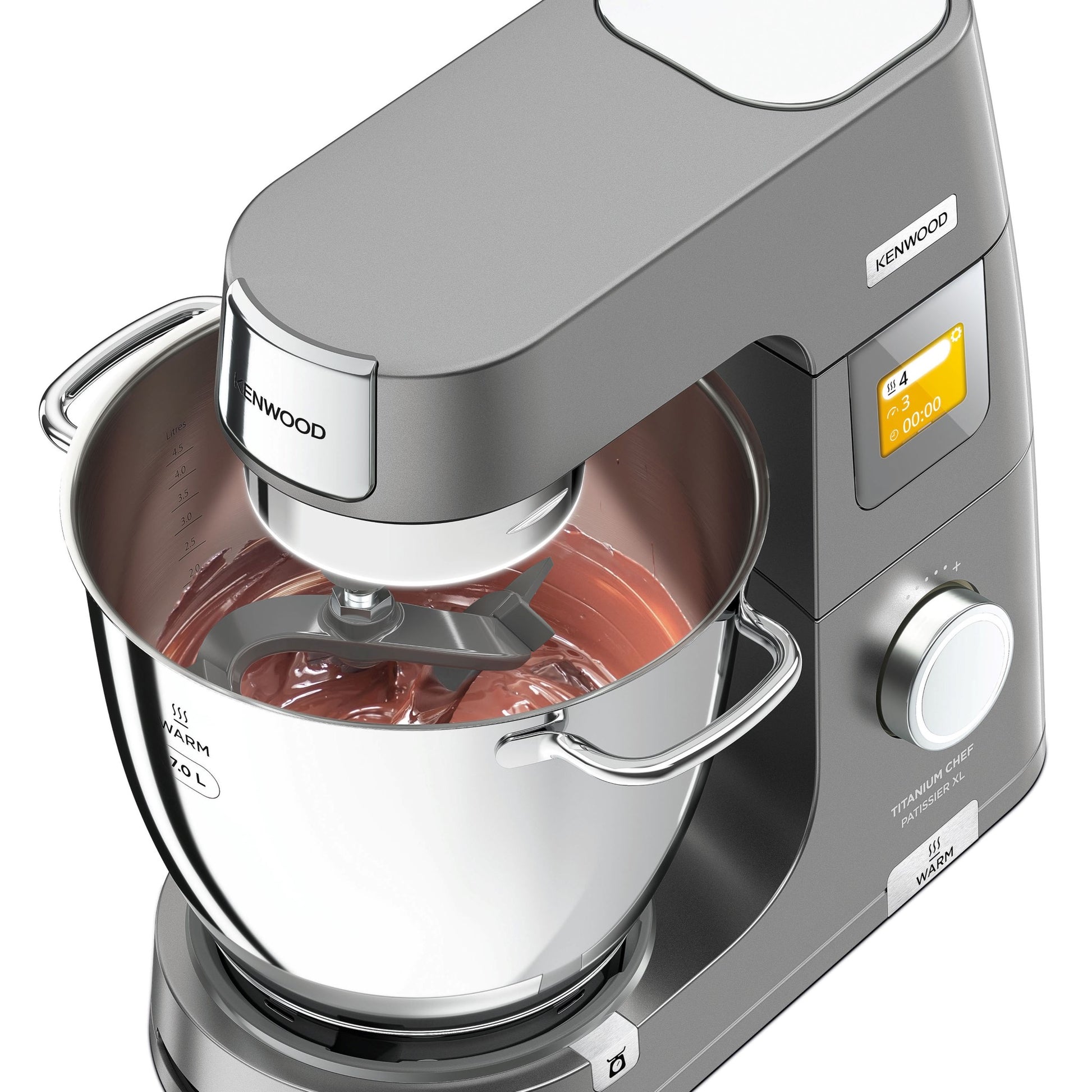KENWOOD Stand Mixer Metal Body Kitchen Machine TITANIUM CHEF PATISSIER XL with Warming Function, Built-in Weighing Scale, DuoBowl, 4 Tools, Glass Blender, Meat Grinder, Multi Mill KWL90.344SI Silver