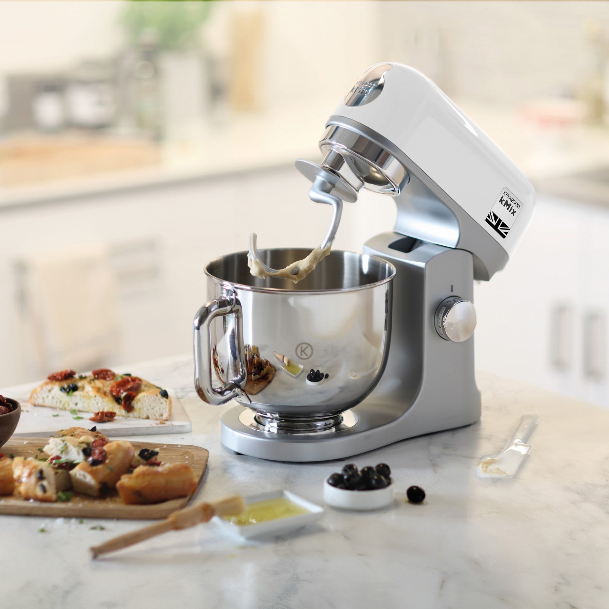 KENWOOD Stand Mixer PREMIUM Kitchen Machine kMix 1000W with 5L Stainless Steel Bowl, K-Beater, Whisk, Dough Hook, Splashguard, Spatula, Unique Fold Function, Smart Speed Control KMX750